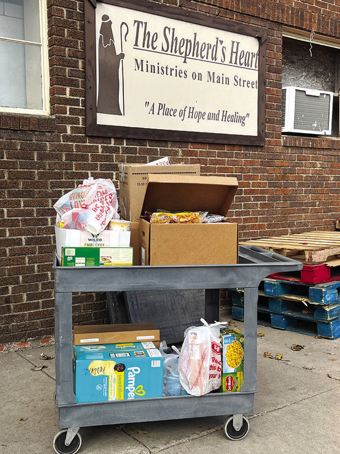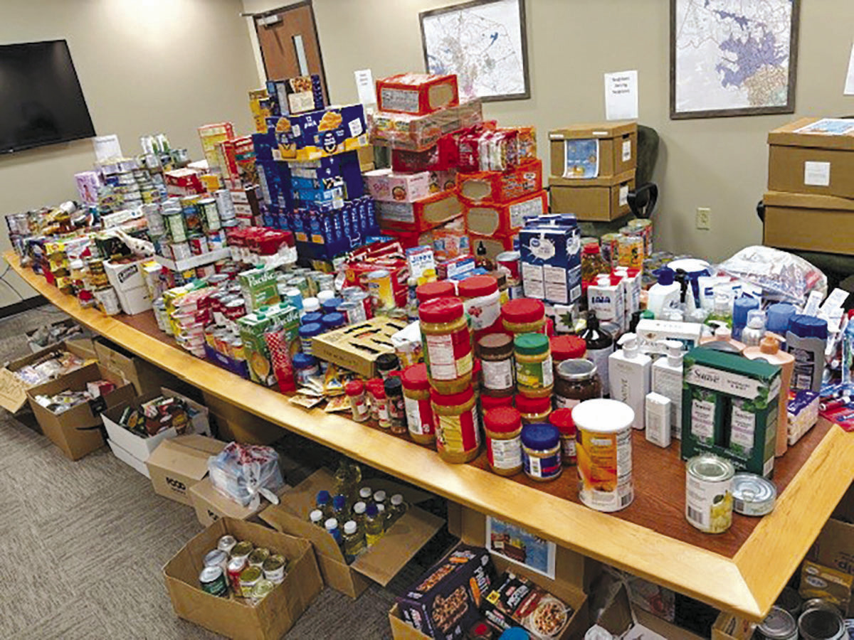 From left: Kelley Hernandez, Garry Brown and Amalia Puentes volunteer at Shepherd’s Heart Food Pantry during a food drive last month. Eleven food pantries across Williamson County, including Shepherd’s Heart and the Hutto Resource Center, collected more than 3,000 pounds of food.