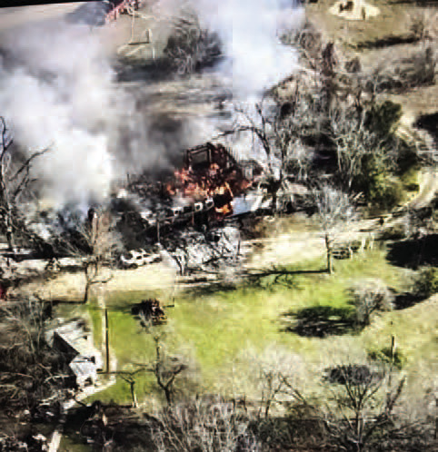 An aerial view of the structure fire in southwest Taylor not far from Samsung Austin Semiconductor and Taylor High School shows the century-old home engulfed in flames on Feb. 2, 2025. Photo by Jack Fleetwood