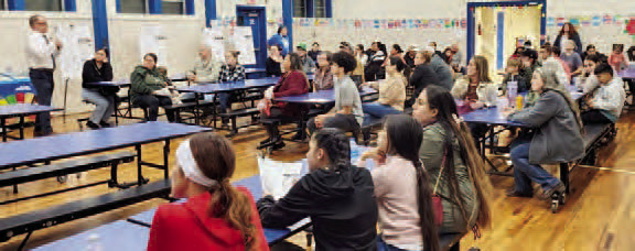 Parents and students listen to a presentation by Superintendent Earl Parcell about the Coupland Independent School District’s new junior high and high school, which opens August 2026. An informational session is planned for Jan. 21. Photo courtesy of Coupland ISD