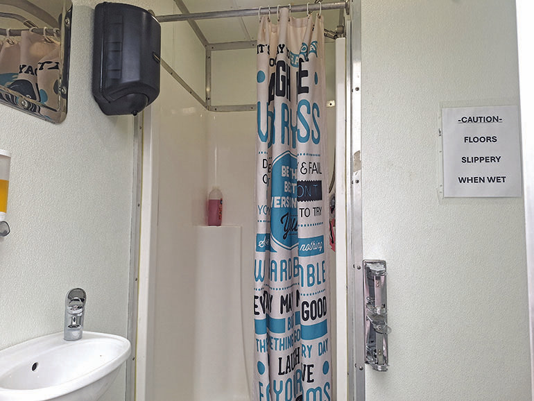 The Taylor CAN shower trailer at the church has two enclosed private bathrooms with showers, toilets and sinks, and a third room with washer and dryer units makes it possible for the men to take care of these necessities.